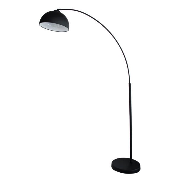 (Globe not included)A contemporary chrome, brass or matt black curved floor lamp, ideal for any living area.